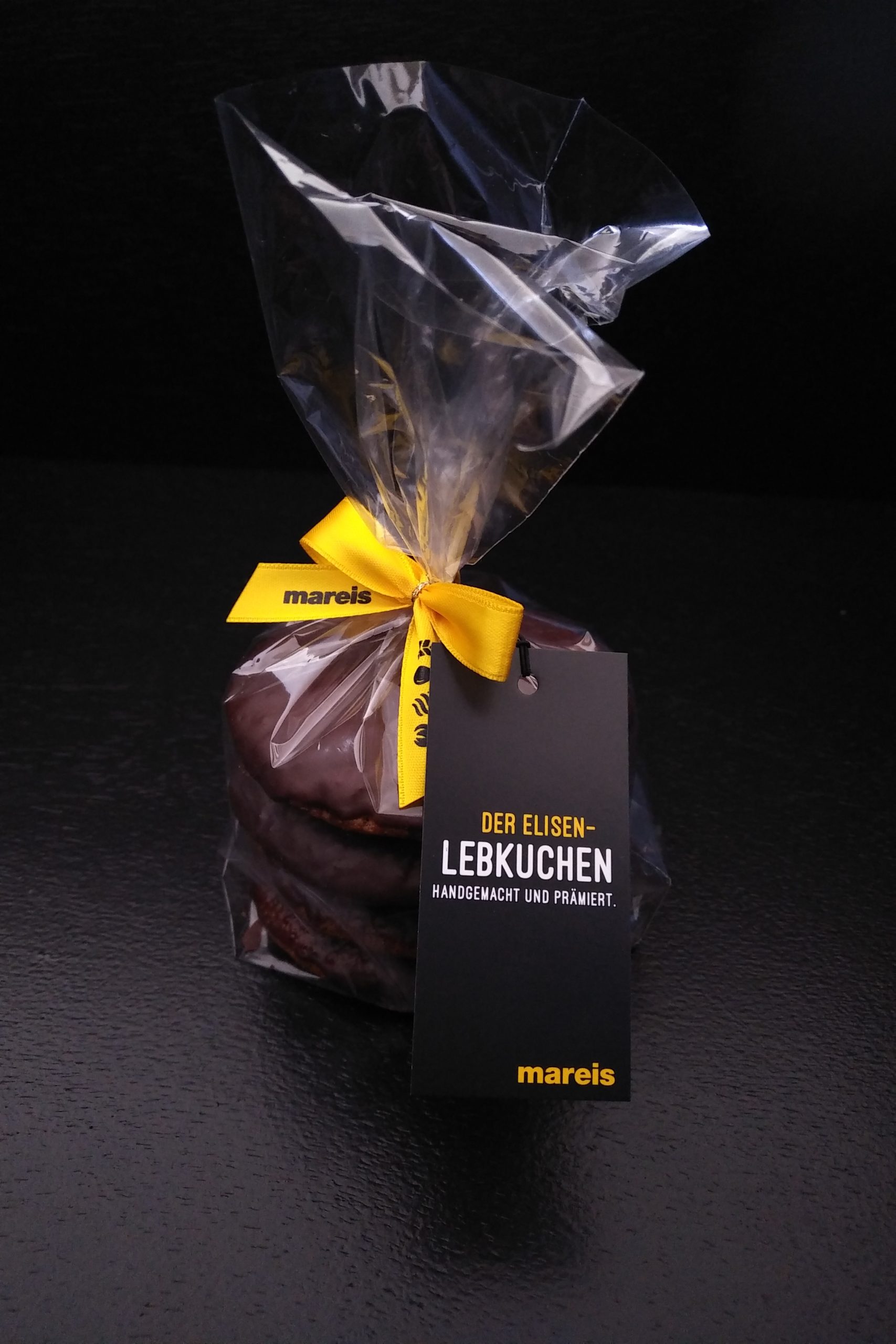 ZUTATEN: Haselnüsse, Zucker, Eiweiß, Marzipan, Orangeat, Zitronat, Honig, Aprikosenkonfitüre, Weizenmehl, Lebkuchengewürz, Kuvertüre Backtriebmittel: Ammonium